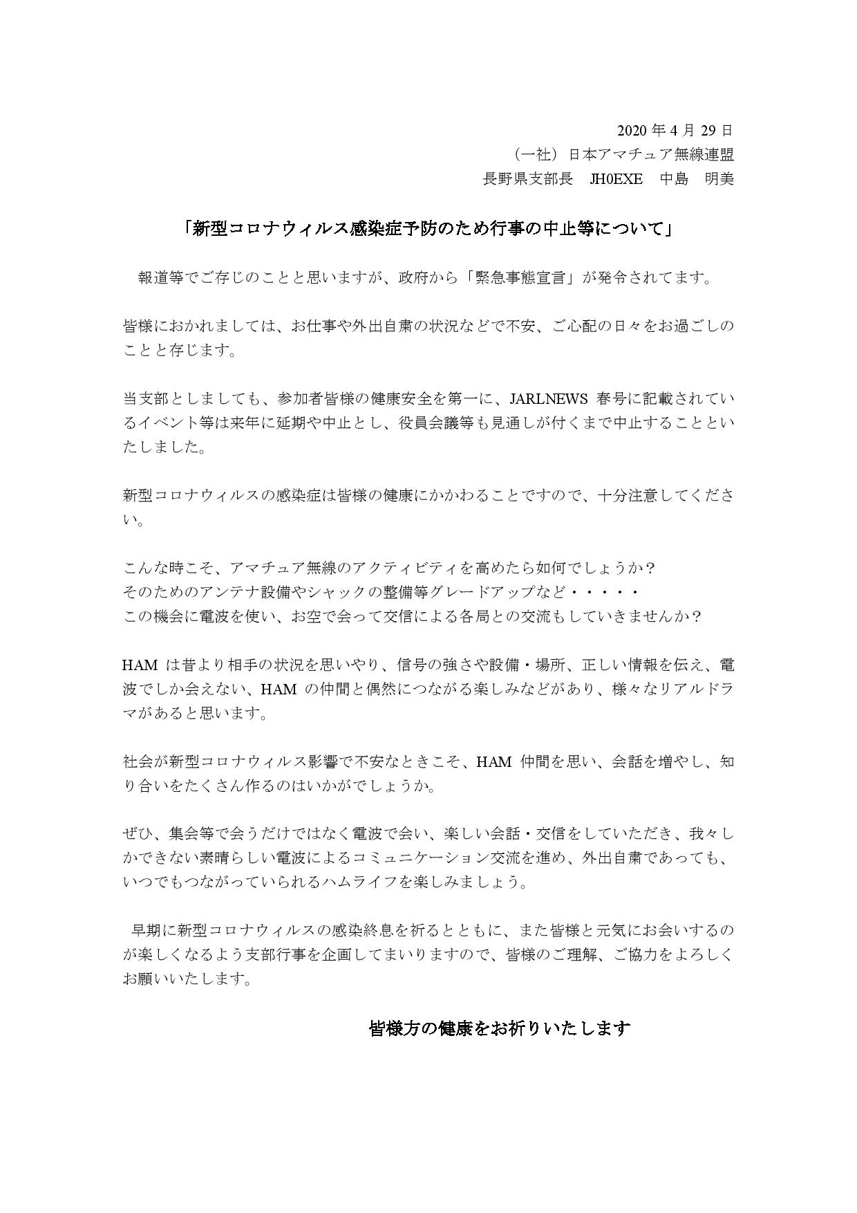 長野県内の各行事も(秋頃迄)軒並延期や、中止が発表されている状況であります。