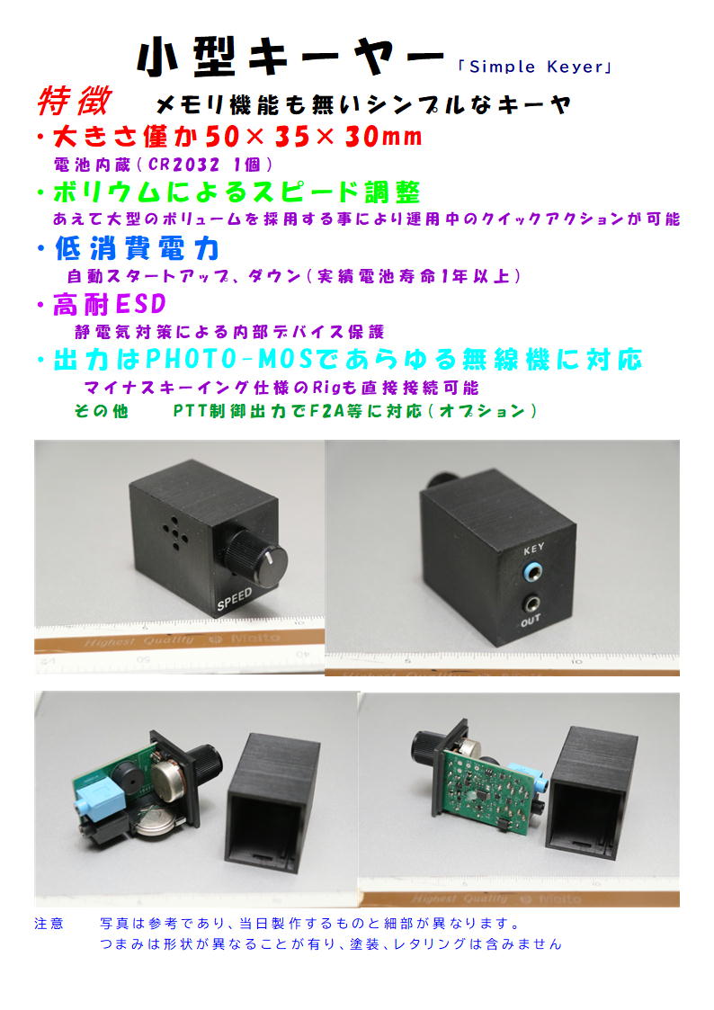 大きさ僅か40×35×30mmのエレキー、ボリウムによるスピード調整